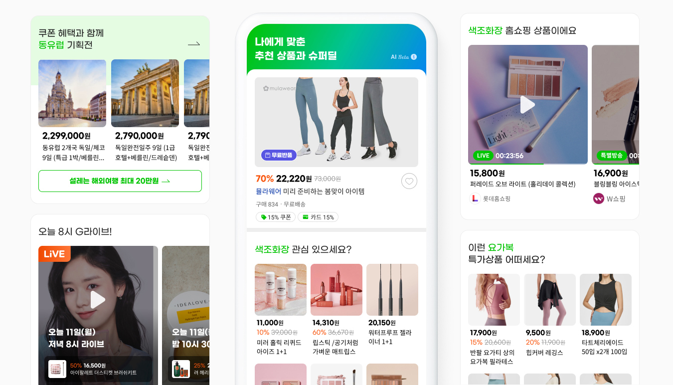 행동 패턴을 기반으로 맞춤형 상품을 제공한다. 예를 들어 여성의류를 판매하는 G라이브가 있는 날에는 최근 티셔츠를 구경하거나 구매한 경험이 있는 고객에게 우선적으로 방송을 노출시킨다.